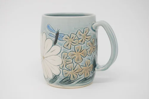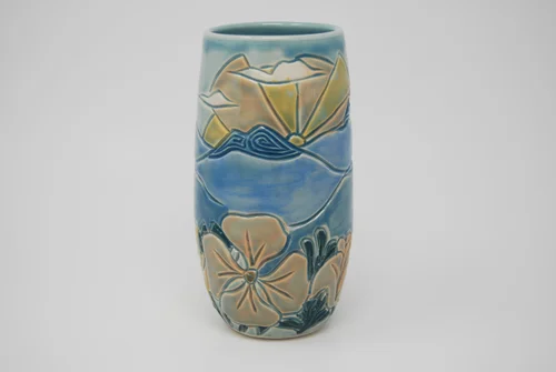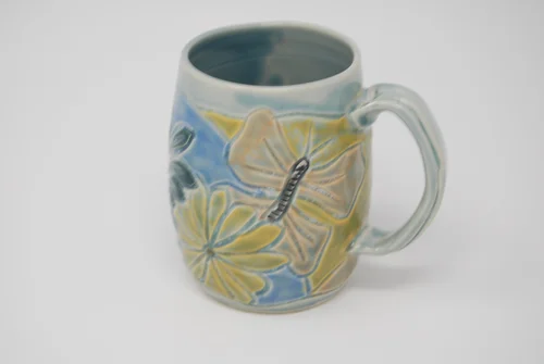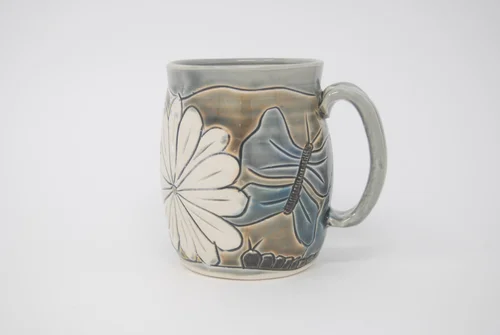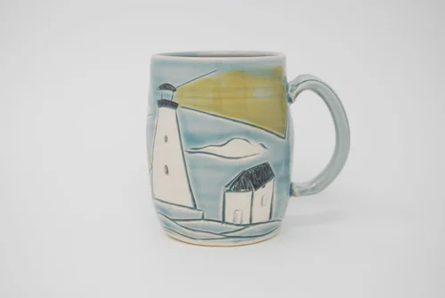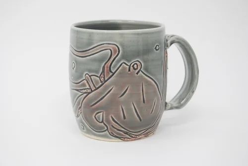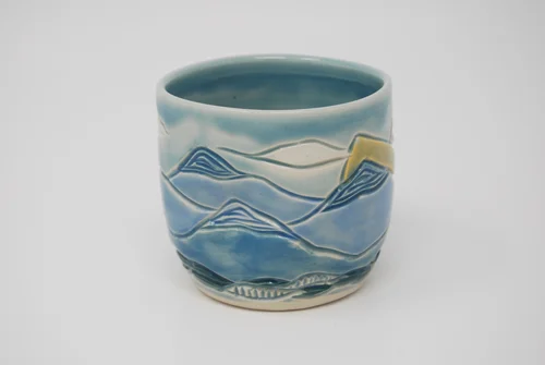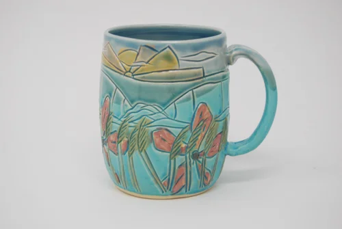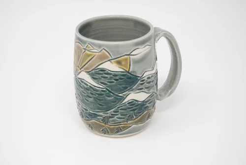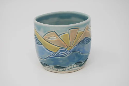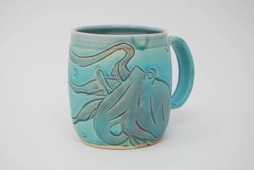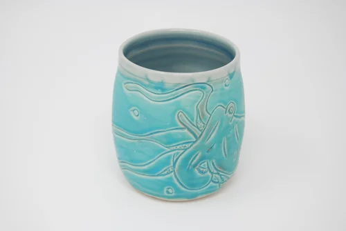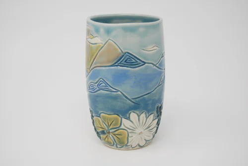 Each of these mugs are handmade on the wheel and hand carved individually with the ocean in mind. Intricate and whimsical with layers of imagery that mimics landscapes and ocean life.